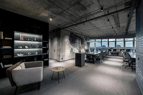 工業風格的辦公室給人都是比較色彩單一的,主要采用黑白灰三色調為主色調進行裝修設計,來達到整體的視覺效果。通過黑白灰的主色調在配以少量輔色調進行點綴裝修,可以使得整個空間給人更加統一,視覺效果也比較好。